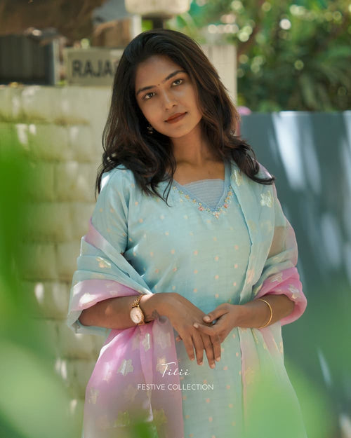 Unstitched suit set in dewlight mint